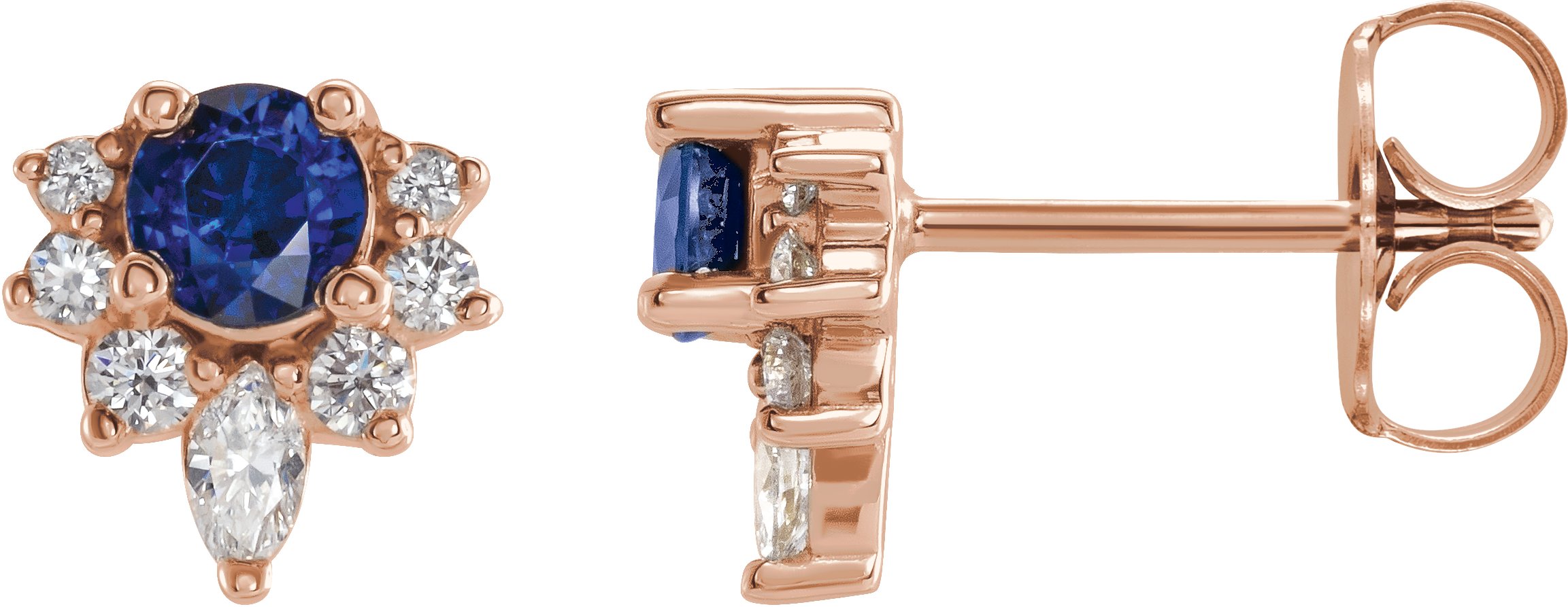 14K Rose Chatham Created Blue Sapphire & 1/6 CTW Diamond Earrings