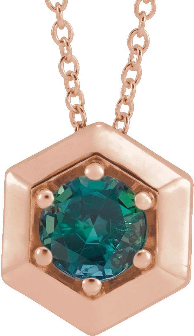 14K Rose Chatham Lab Created Alexandrite Geometric 16 18" Necklace Ref. 16628925