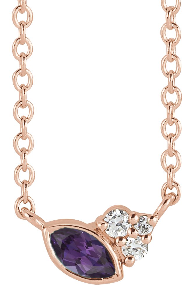 14K Rose Chatham Lab Created Alexandrite & .03 CTW Diamond 18 inch Necklace