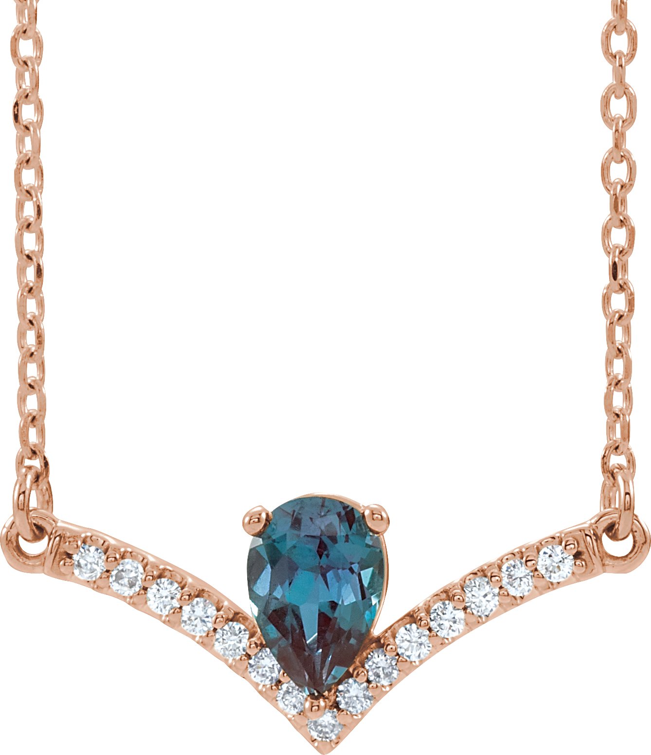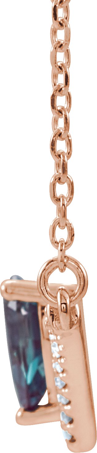 14K Rose Chatham Lab Created Alexandrite & .06 CTW Diamond 16 inch Necklace