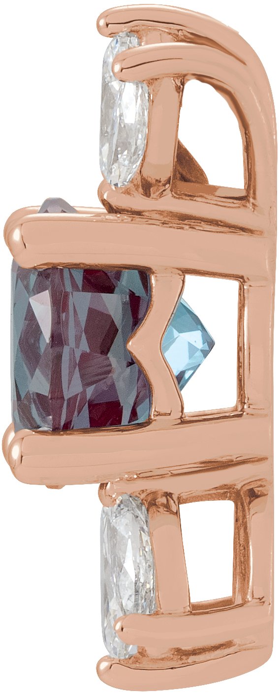 14K Rose Chatham Lab Created Alexandrite & 1/4 CTW Diamond 16 18 inch Necklace