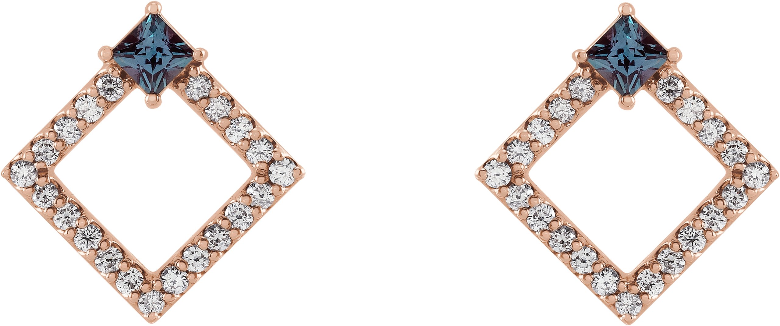 14K Rose Chatham Lab Created Alexandrite & 1/3 CTW Diamond Earrings