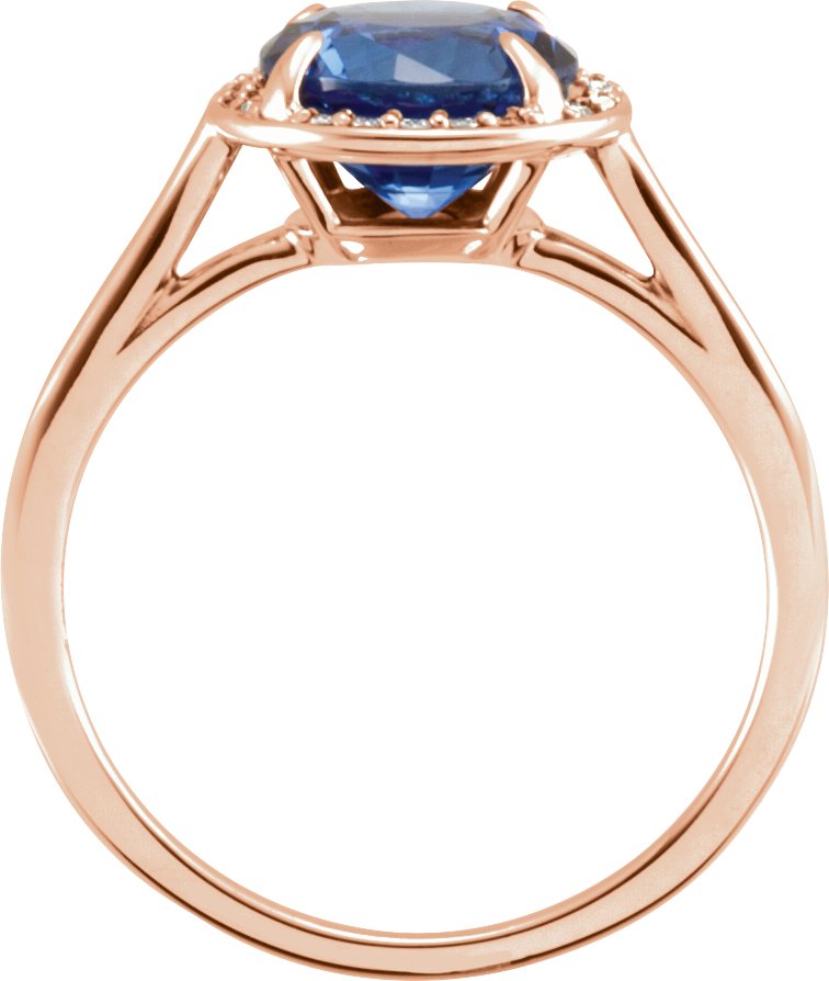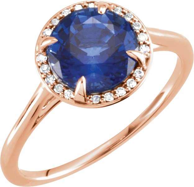 14K Rose Chatham Lab Created Blue Sapphire & .05 CTW Diamond Ring