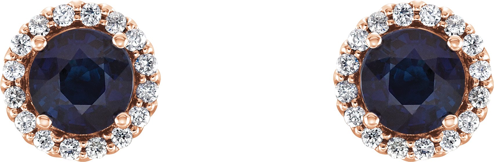 14K Rose Chatham Lab Created Blue Sapphire and .17 CTW Diamond Earrings
