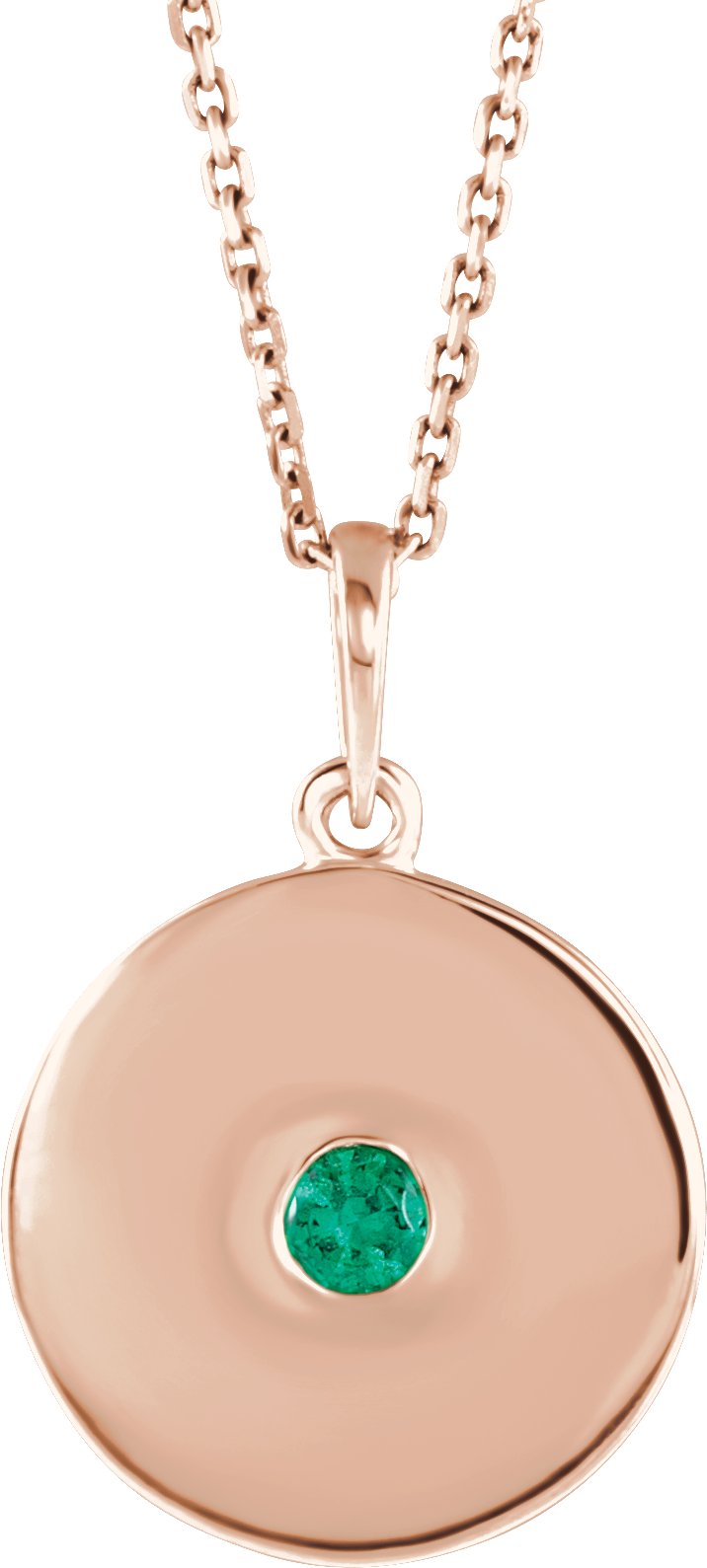 14K Rose Chatham Lab Created Emerald Disc 16 18 inch Necklace