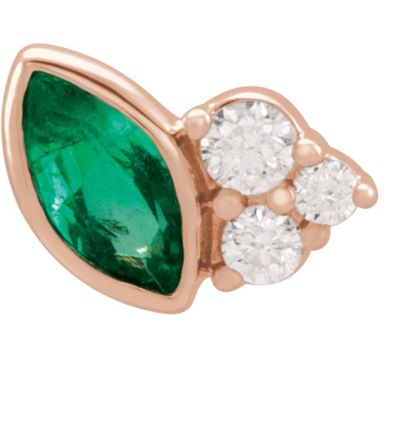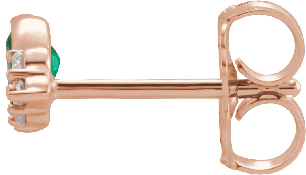 14K Rose Chatham Lab Created Emerald and .03 CTW Diamond Left Earring