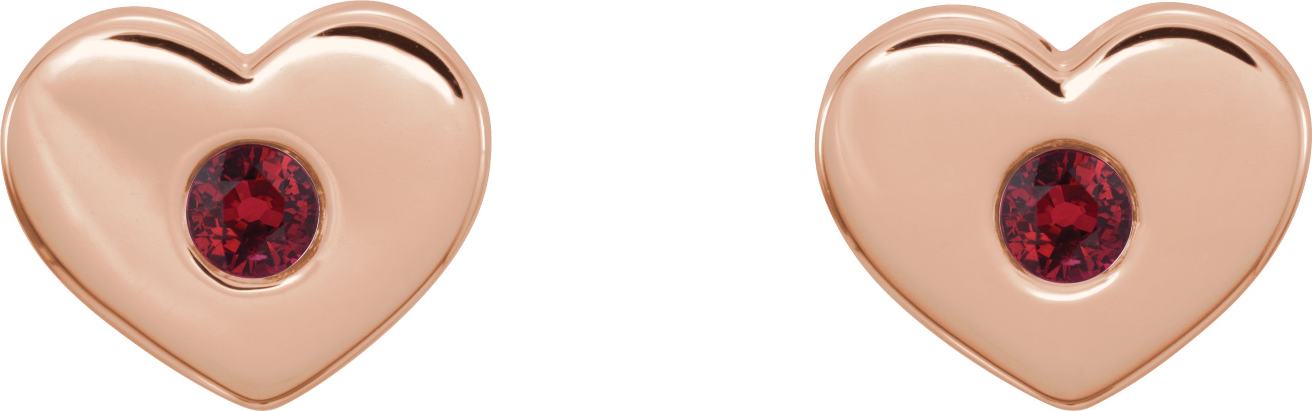 14K Rose Chatham Lab Created Ruby Heart Earrings