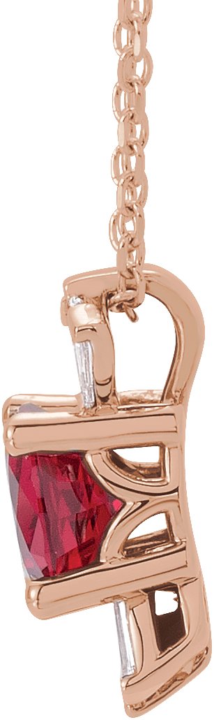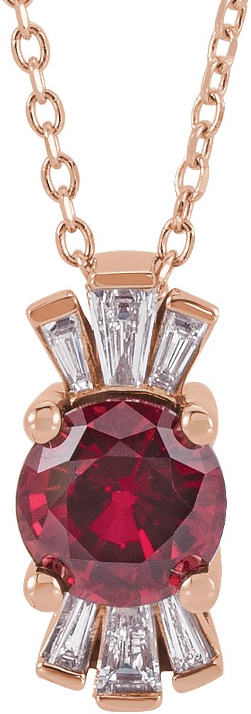 14K Rose Chatham Lab Created Ruby & 1/6 CTW Diamond 16 18 inch Necklace