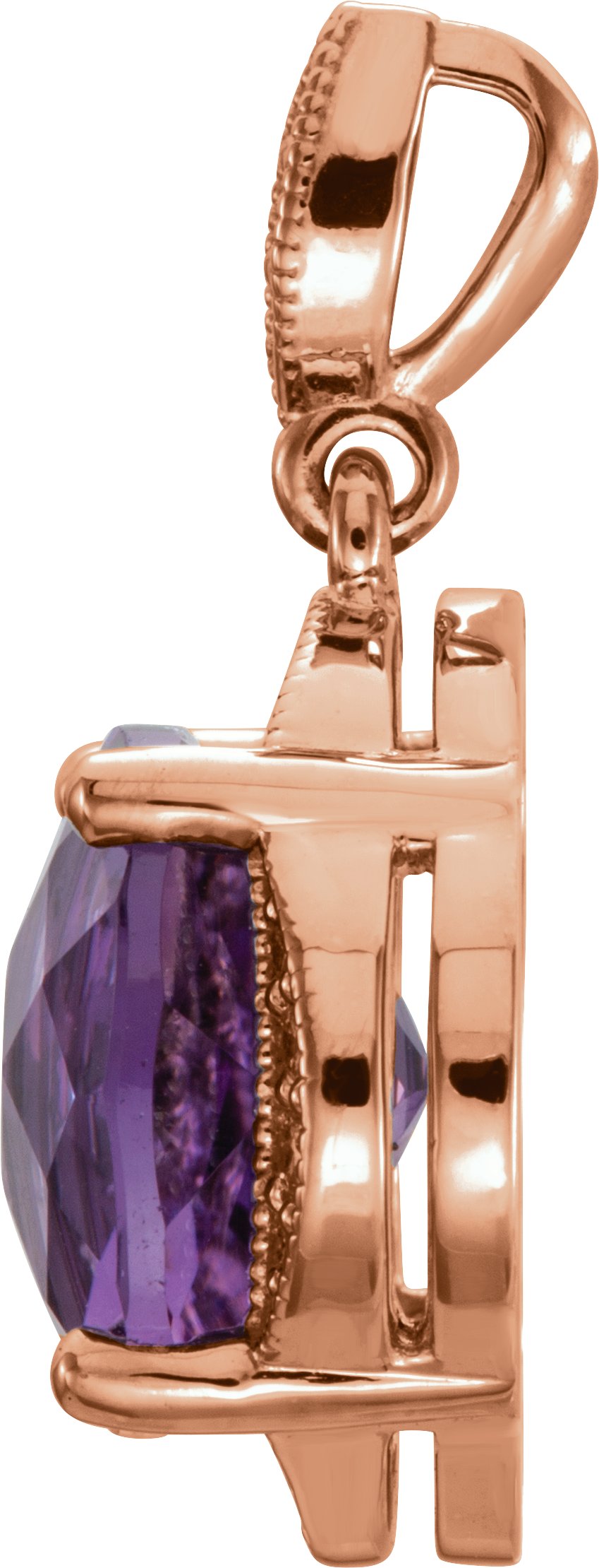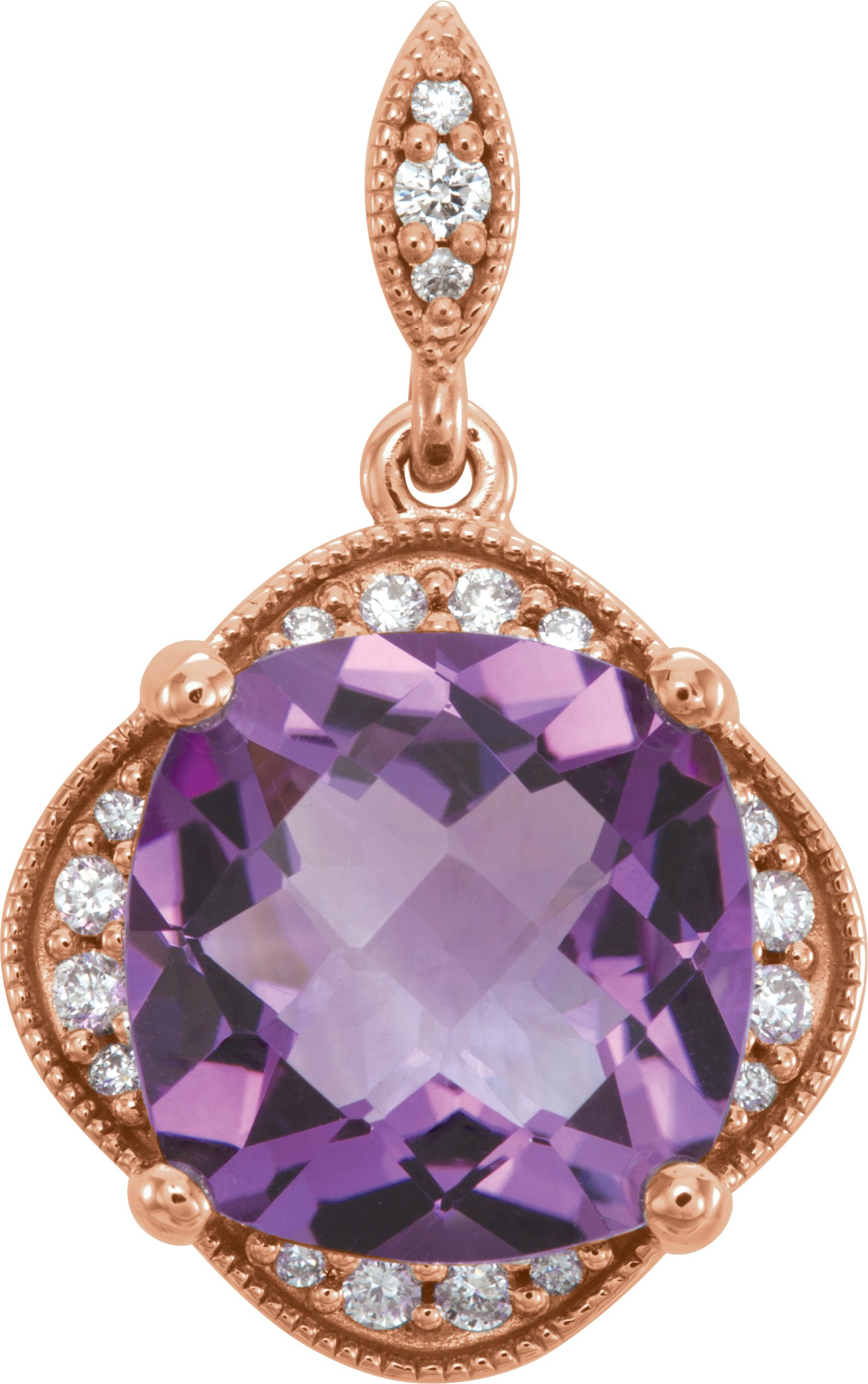 14K Rose Checkerboard Amethyst & Diamond Pendant