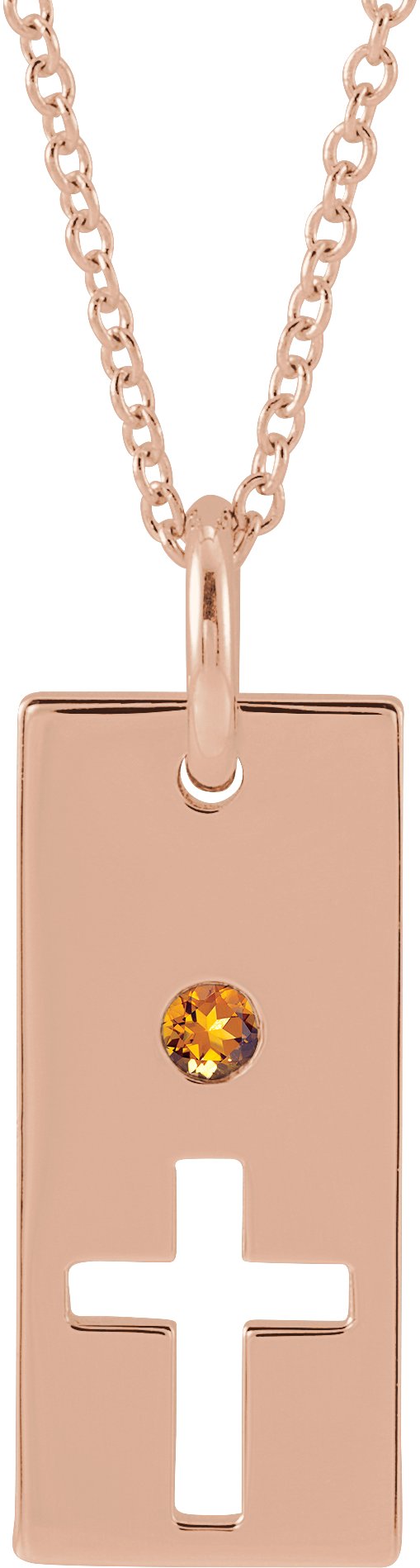 14K Rose Citrine Cross Bar 16 18" Necklace Ref. 17077755