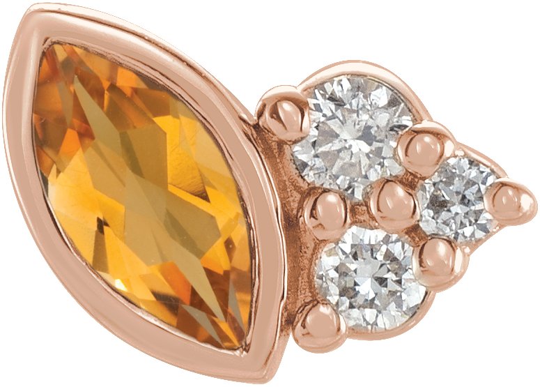 14K Rose Citrine and .03 CTW Diamond Left Earring