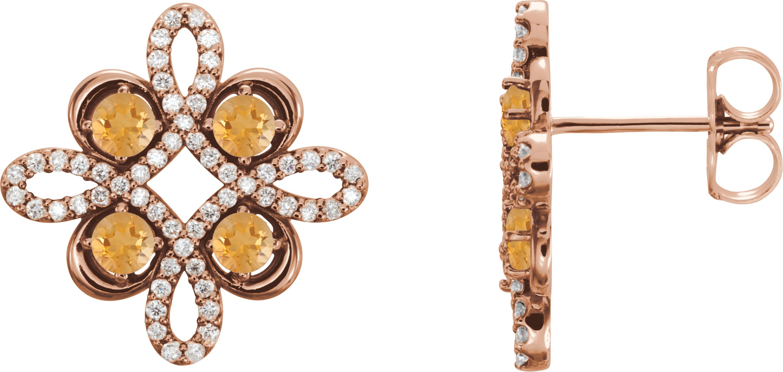 14K Rose Citrine and .25 CTW Diamond Earrings