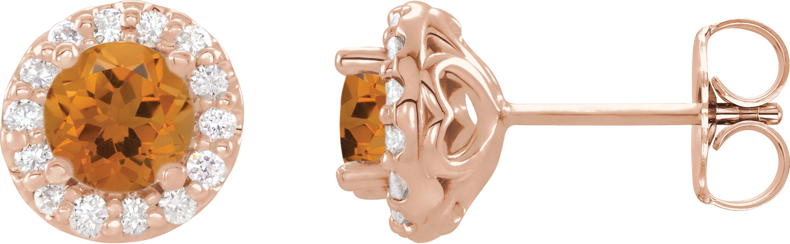 14K Rose Citrine & 1/4 CTW Diamond Earrings