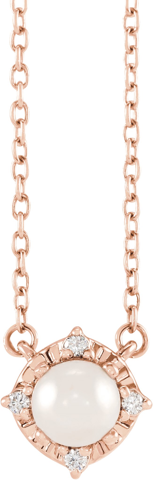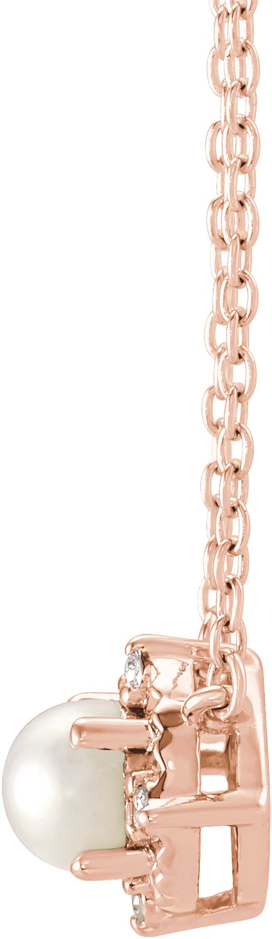 14K Rose Cultured Freshwater Pearl and .04 CTW Natural Diamond Halo Style 18 inch Necklace Ref 17917659
