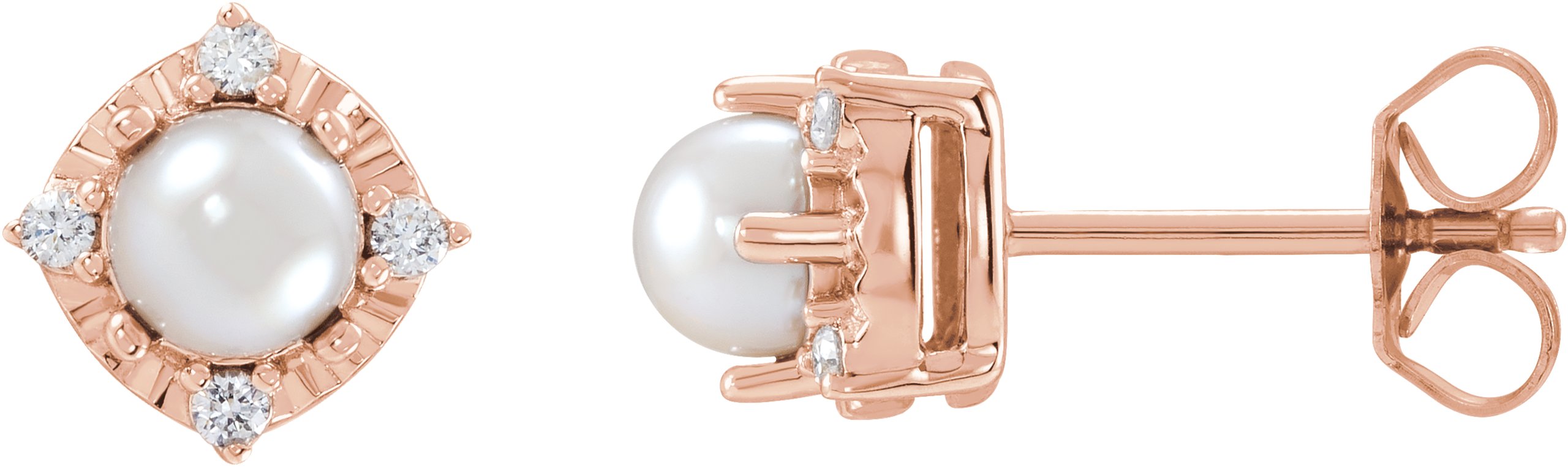 14K Rose Cultured Freshwater Pearl and .08 CTW Natural Diamond Halo Style Earrings Ref 17914946