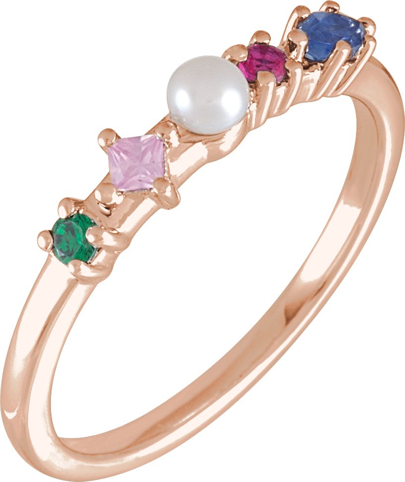 14K Rose Cultured Freshwater Pearl and Natural Multi Gemstone Ring Ref 19346008
