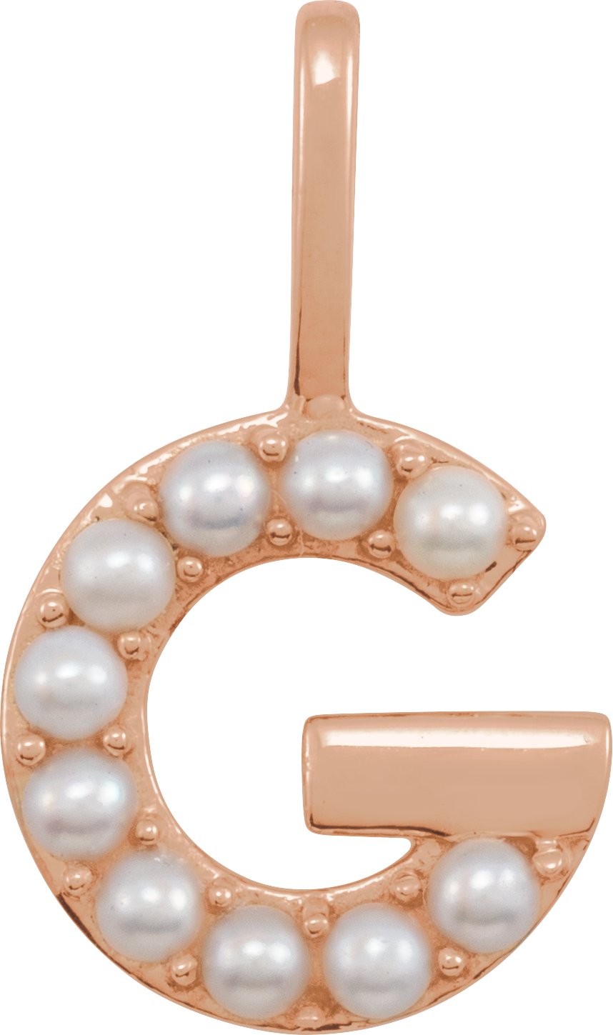 14K Rose Cultured White Pearl Initial G Charm or Pendant Ref 18479262