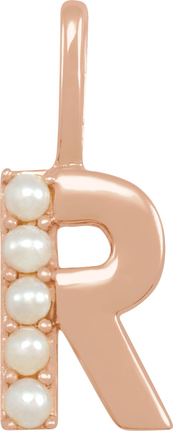 14K Rose Cultured White Pearl Initial R Charm or Pendant Ref 18479295