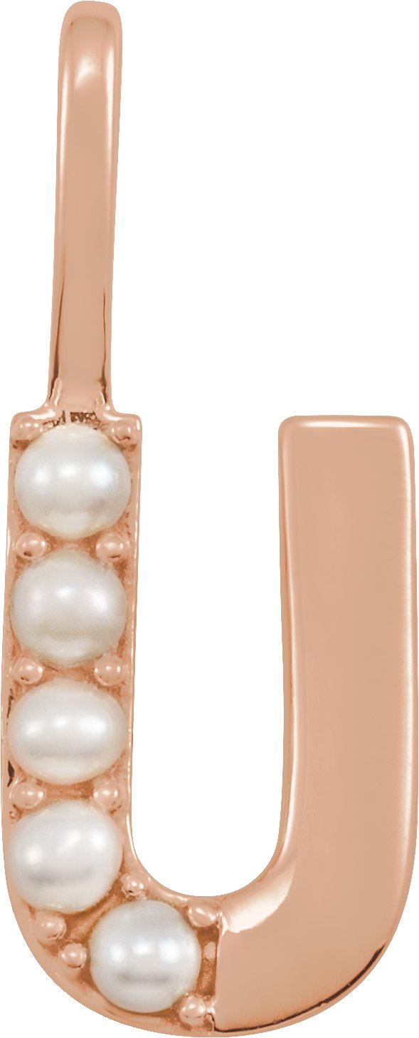14K Rose Cultured White Pearl Initial U Charm or Pendant Ref 18479304
