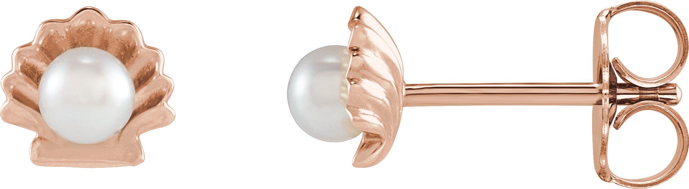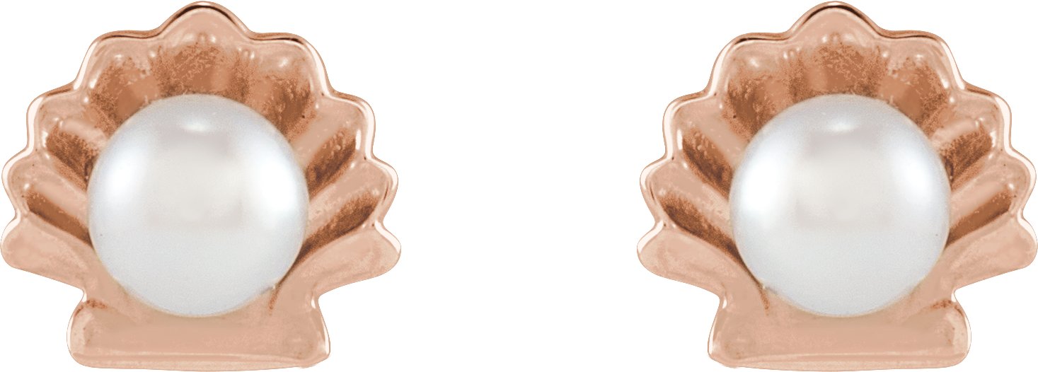 14K Rose Cultured White Seed Pearl Shell Earrings Ref 19671072