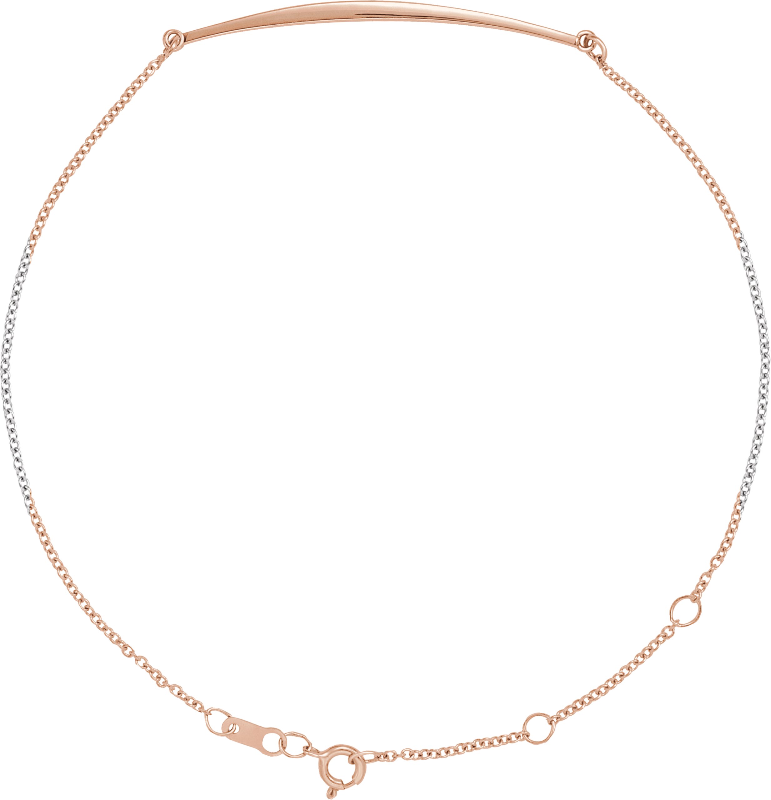 14K Rose Curved Bar 6 1/2-7 1/2" Bracelet