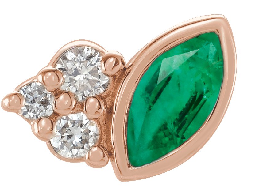 14K Rose Emerald and .03 CTW Diamond Right Earring