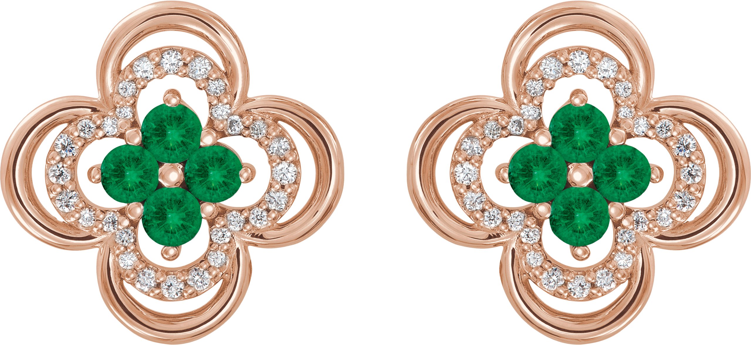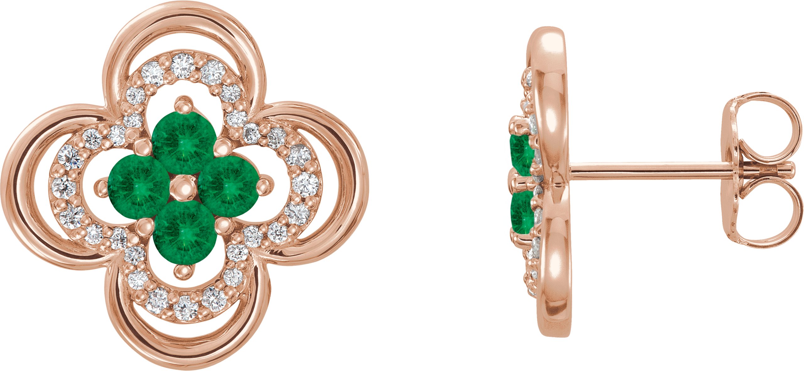 14K Rose Emerald & 1/5 CTW Diamond Clover Earrings