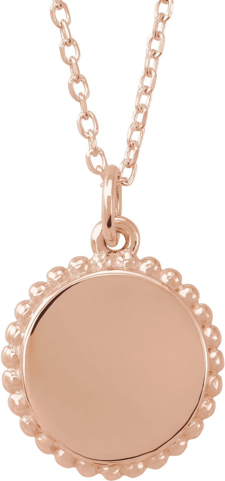 14K Rose Engravable Beaded Disc 16 18" Necklace Ref. 12725245