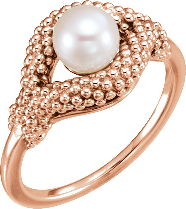 14K Rose Freshwater Cultured Pearl Beaded Ring
