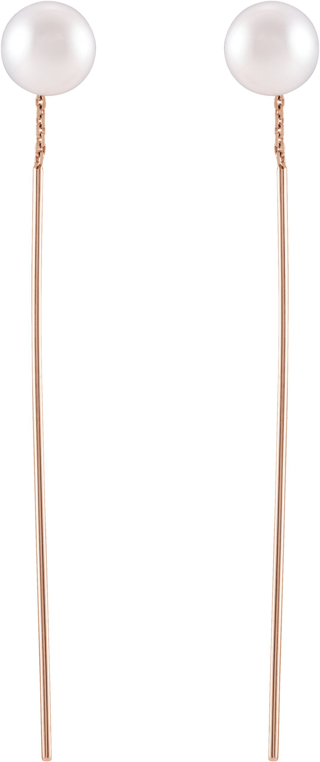 14K Rose Freshwater Cultured Pearl Threader Earrings