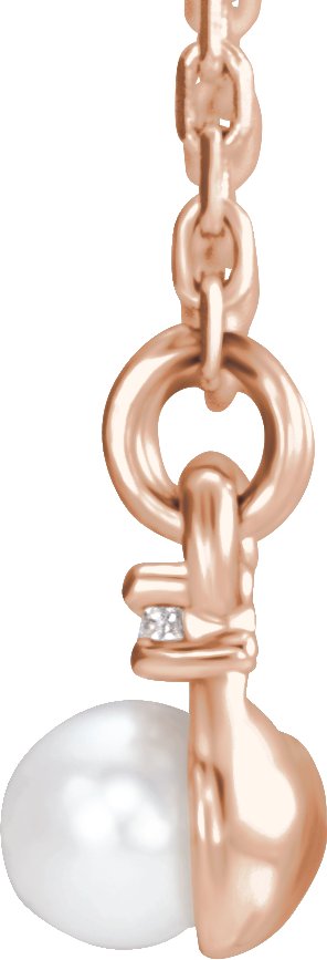 14K Rose Freshwater Cultured Pearl & 1/8 CTW Diamond Bar 16 18 inch Necklace
