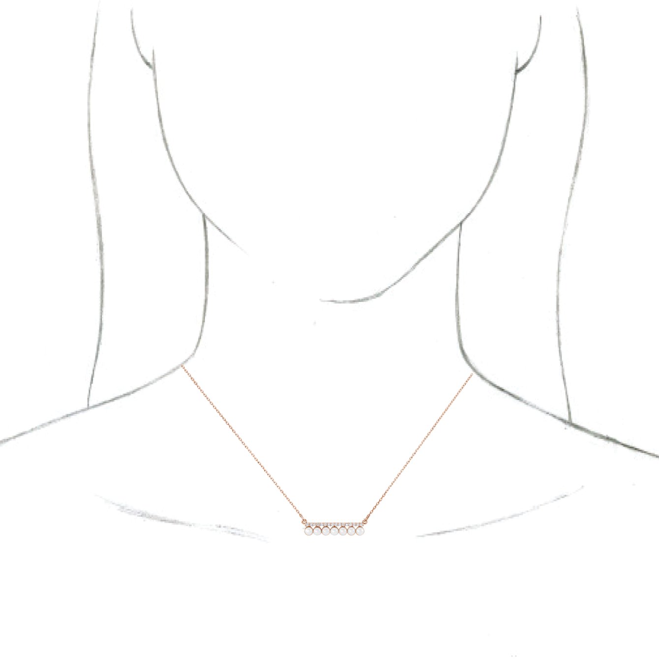 Description: White Freshwater Cultured Pearl And 1/8 Ctw Dia Bar Necklace