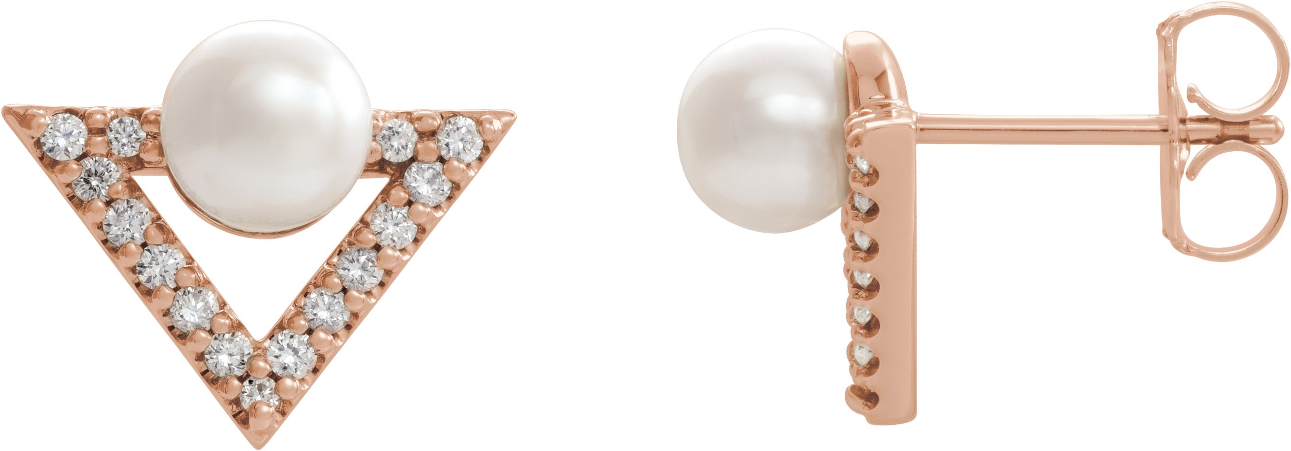 14K Rose Freshwater Cultured Pearl & 1/5 CTW Diamond Earrings