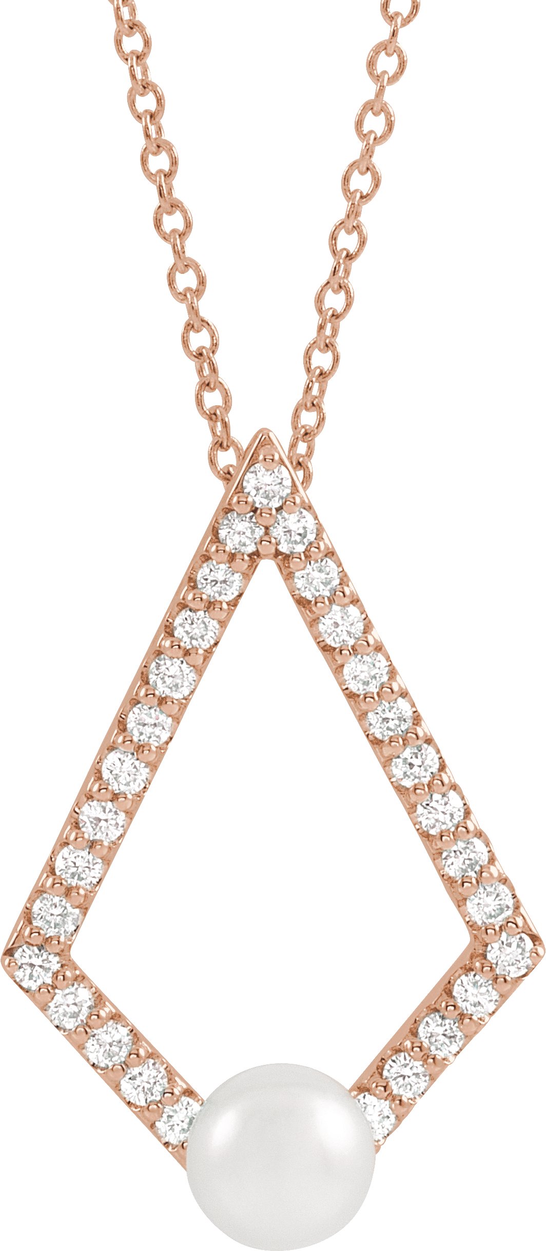14K Rose Freshwater Cultured Pearl & 1/4 CTW Diamond Geometric 16 18 inch Necklace