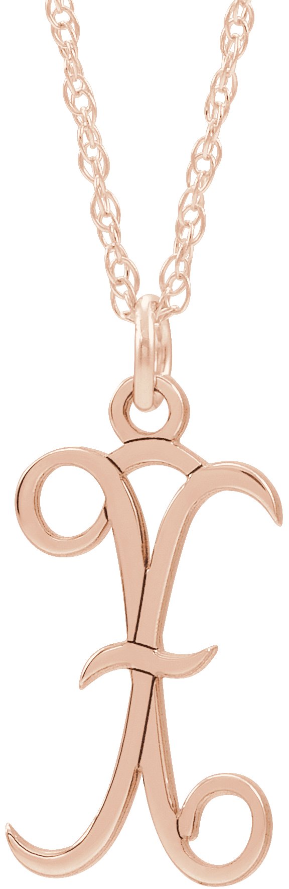 14K Rose Gold Plated Sterling Silver Script Initial X 16 18" Necklace Ref. 16047199