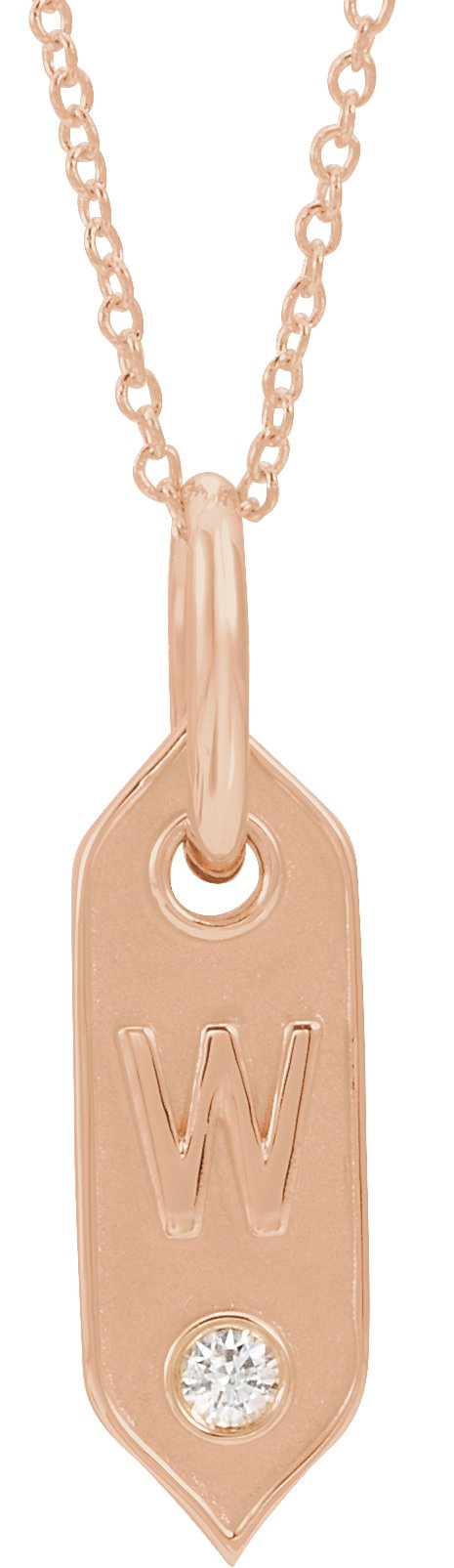14K Rose Initial W .05 CT Diamond 16-18" Necklace