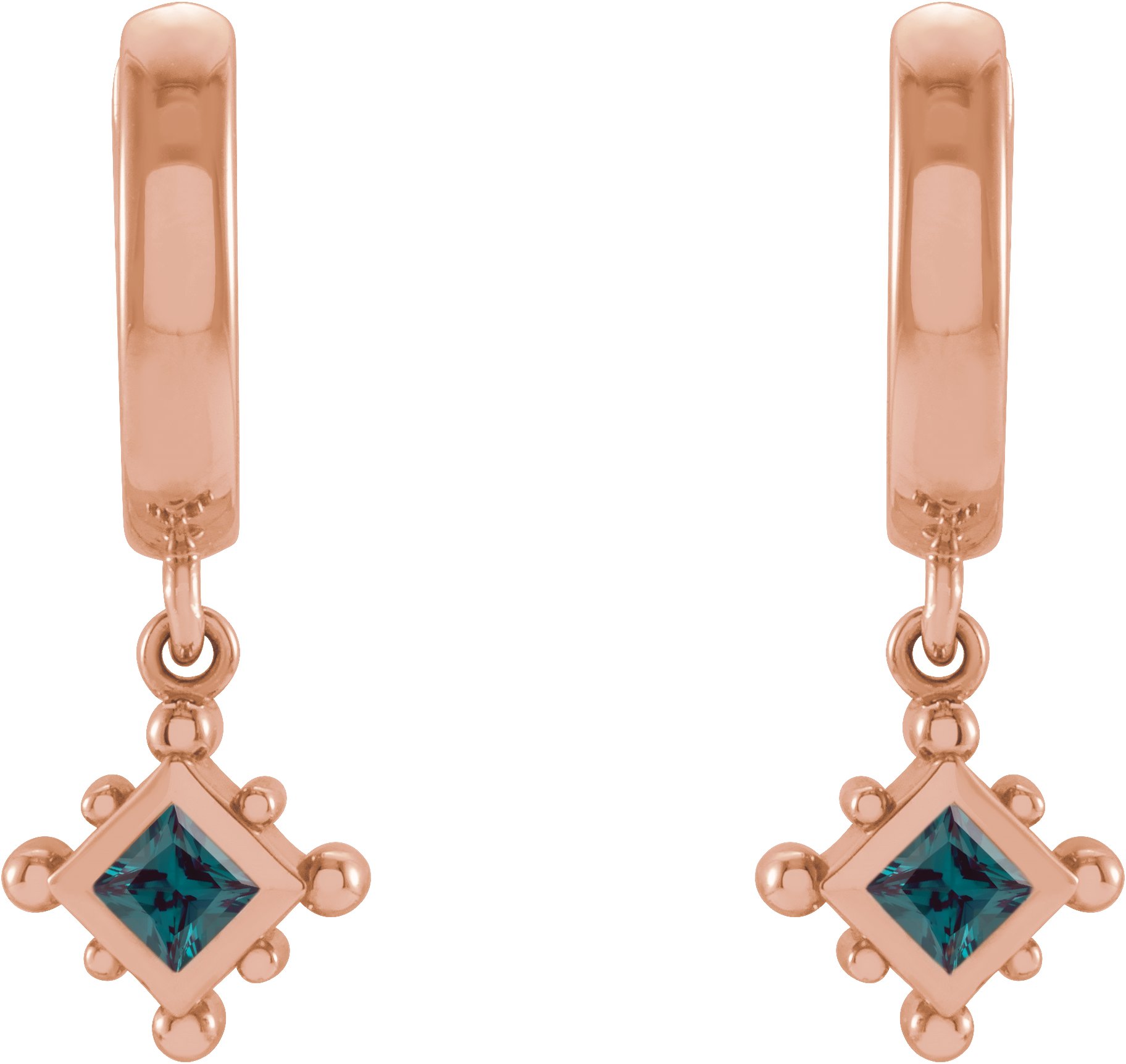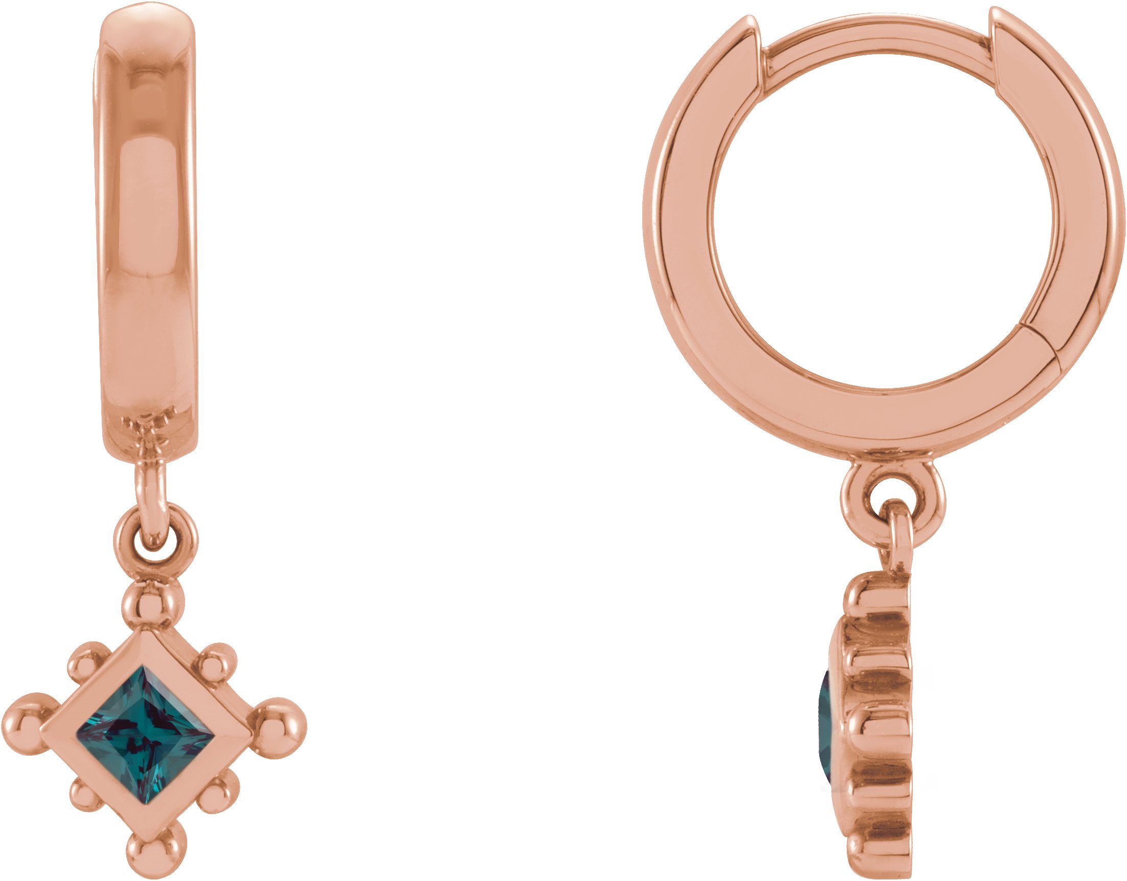 14K Rose Lab Grown Alexandrite Beaded Bezel Set Hoop Earrings Ref 18069135