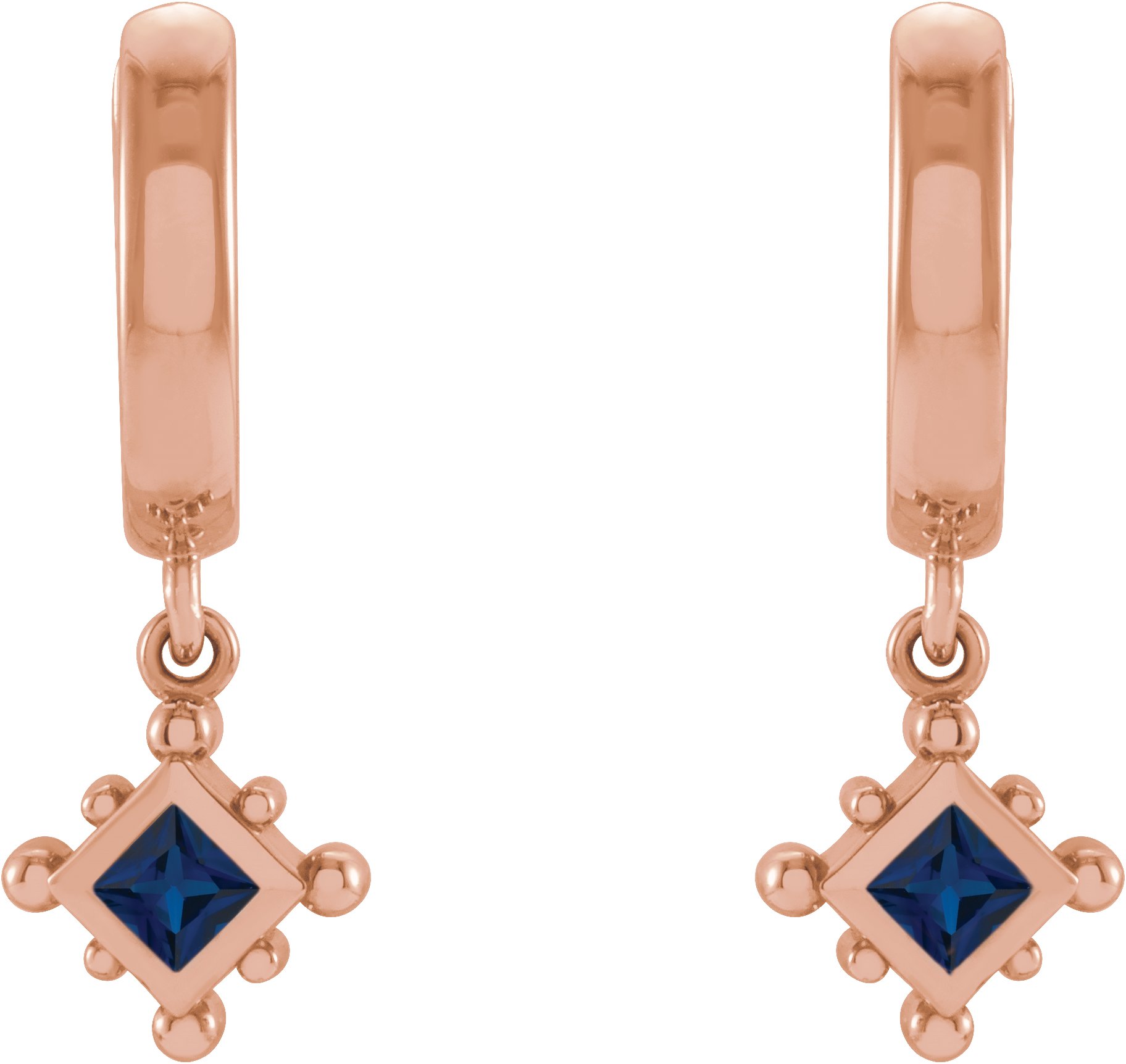 14K Rose Lab Grown Blue Sapphire Beaded Bezel Set Hoop Earrings Ref 18069088