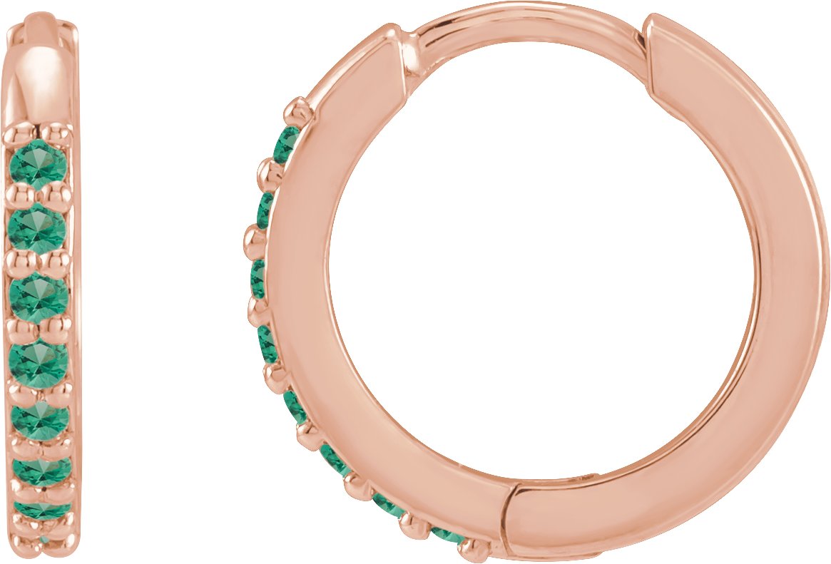 14K Rose Lab-Grown Emerald 12.5 mm Huggie Earring
