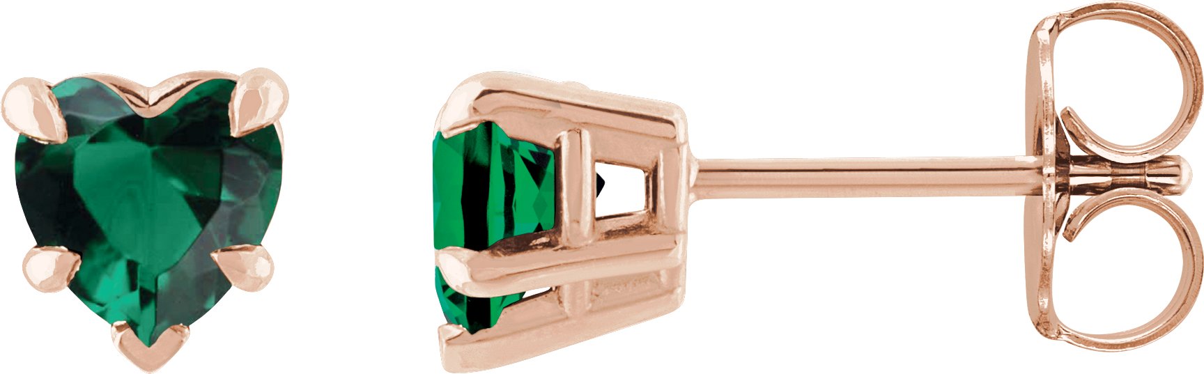 14K Rose Lab Grown Emerald Stud Earring Ref 19750334