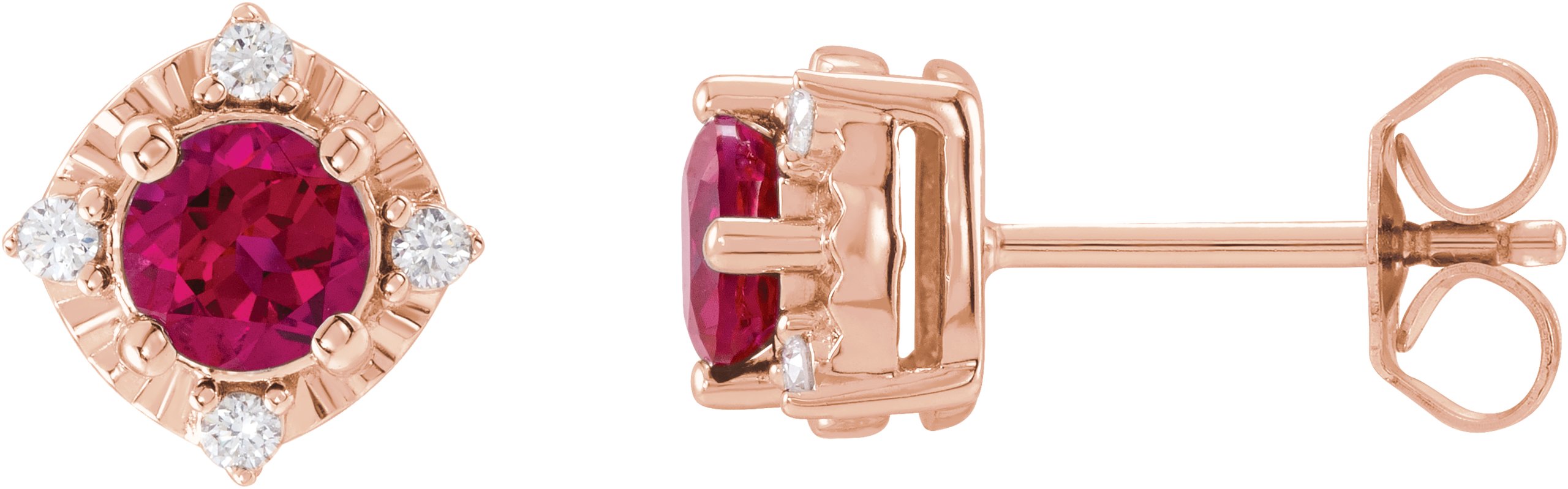 Description: Lab-Grown Ruby And .08 CTW Natural Diamond Earrings