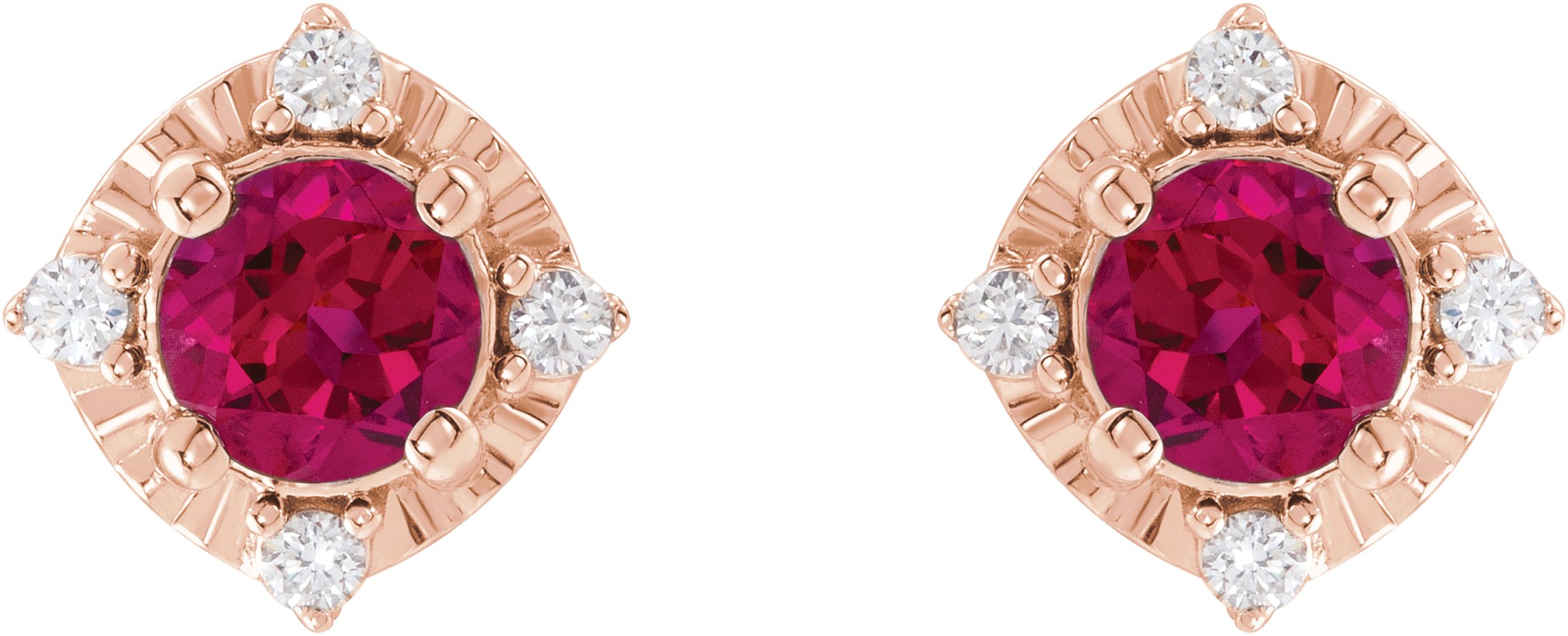 14K Rose Lab Grown Ruby and .08 CTW Natural Diamond Halo Style Earrings Ref 17914950