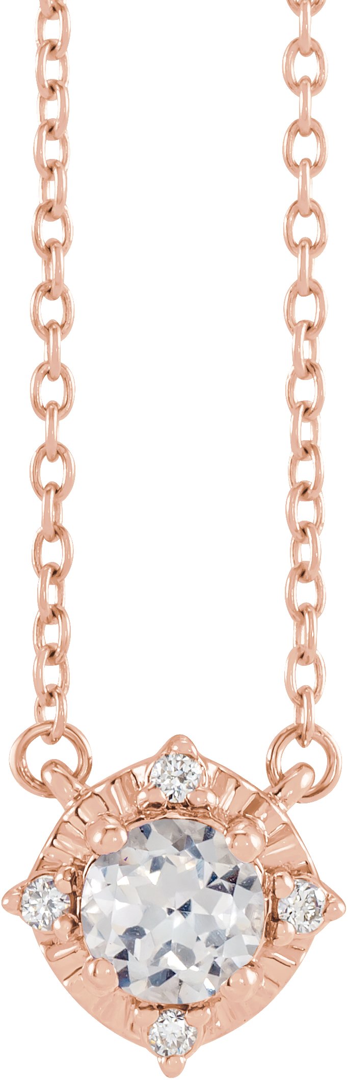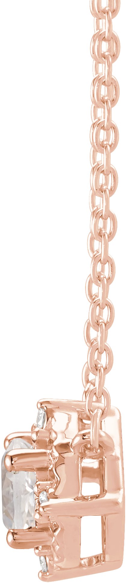 14K Rose Lab Grown White Sapphire and .04 CTW Natural Diamond Halo Style 18 inch Necklace Ref 17917651