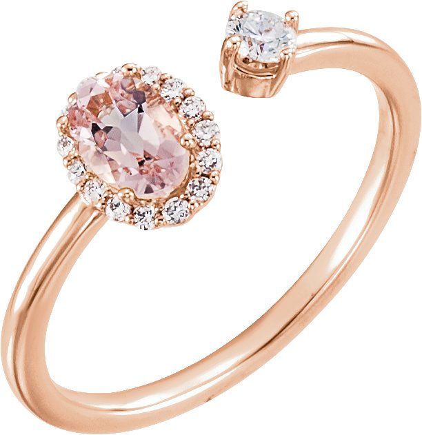 14K Rose Morganite and .17 CTW Diamond Halo Style Ring