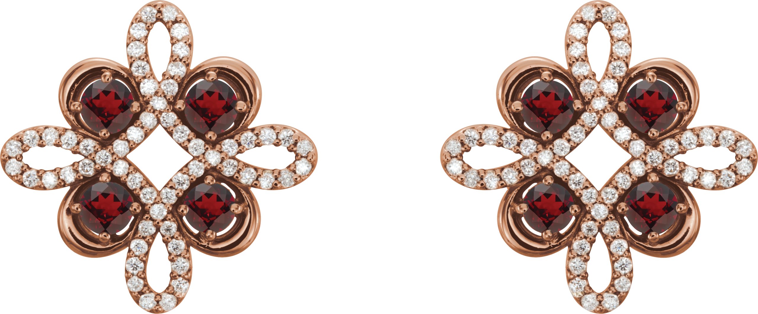 14K Rose Mozambique Garnet and .25 CTW Diamond Earrings