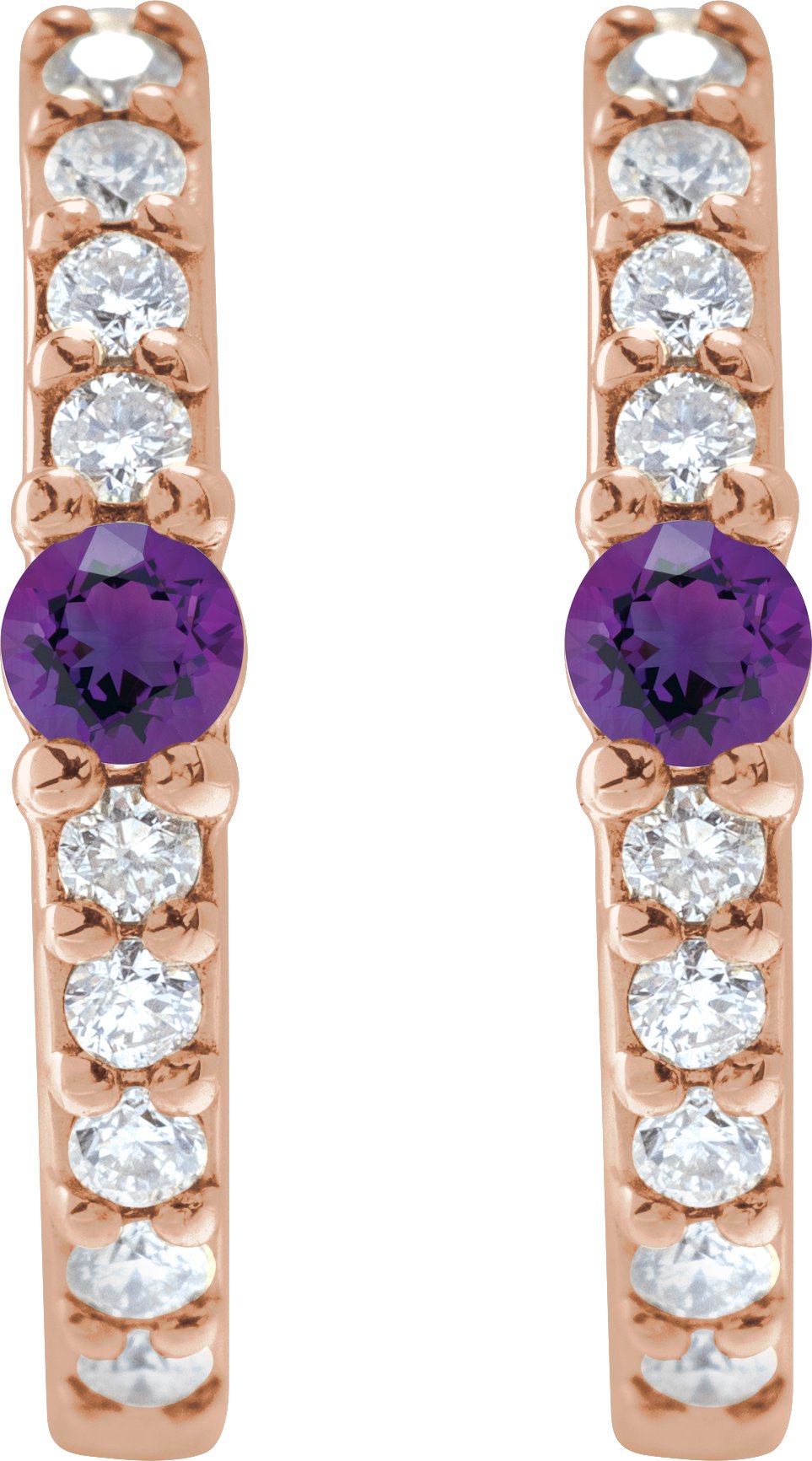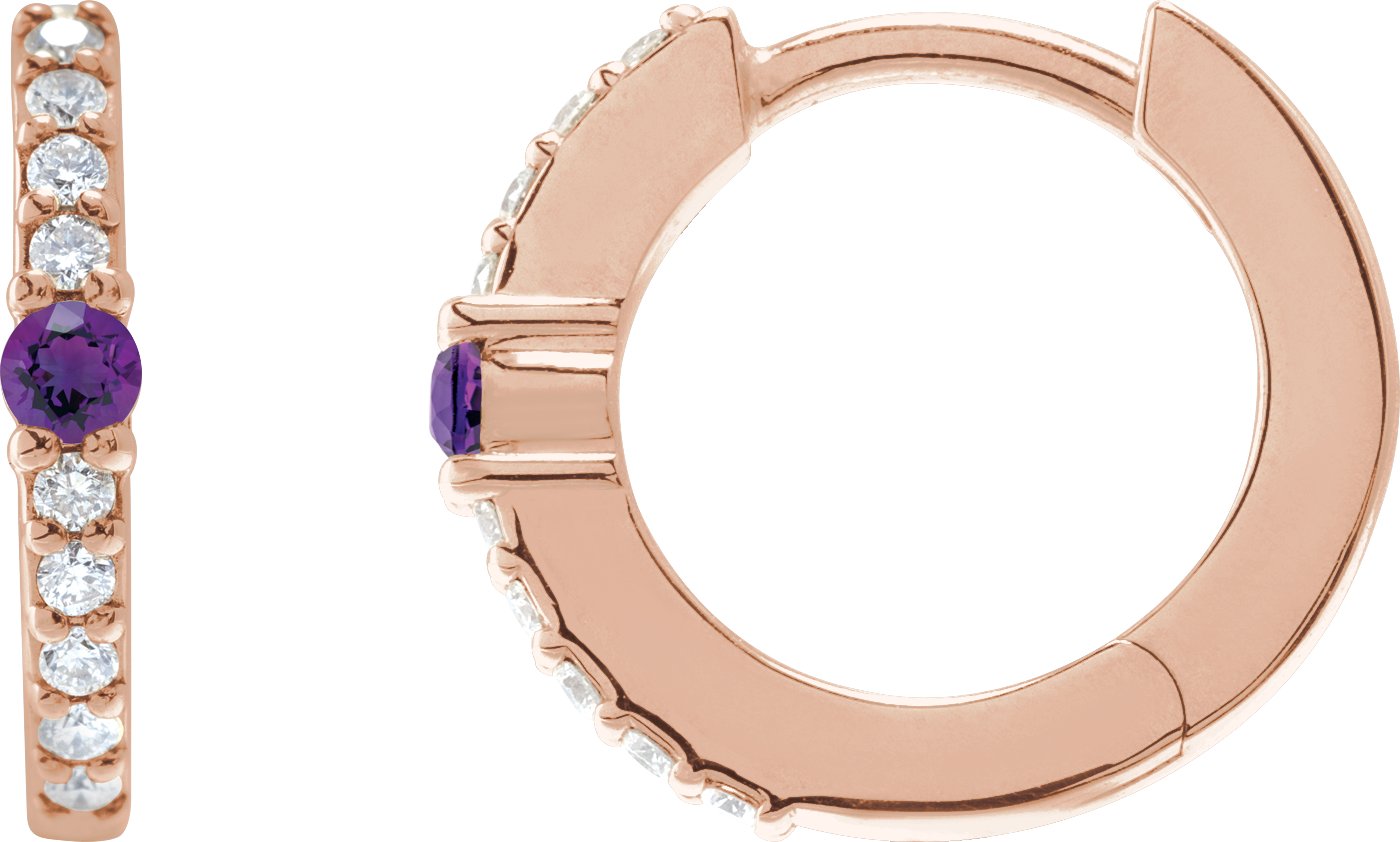 14K Rose Natural Amethyst & 1/8 CTW Natural Diamond 13.6 mm Hoop Earring