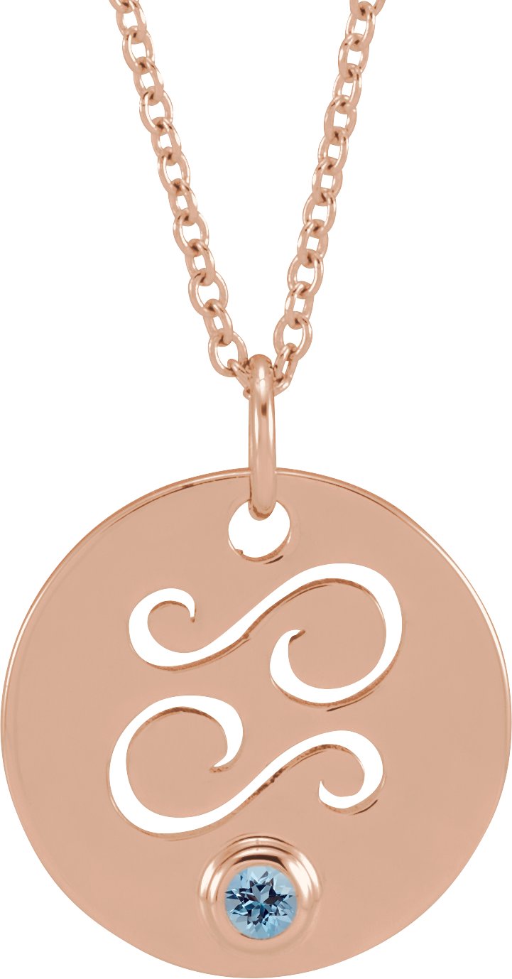 14K Rose Natural Aquamarine Cancer Zodiac 16 to 18 inch Necklace Ref 17886695