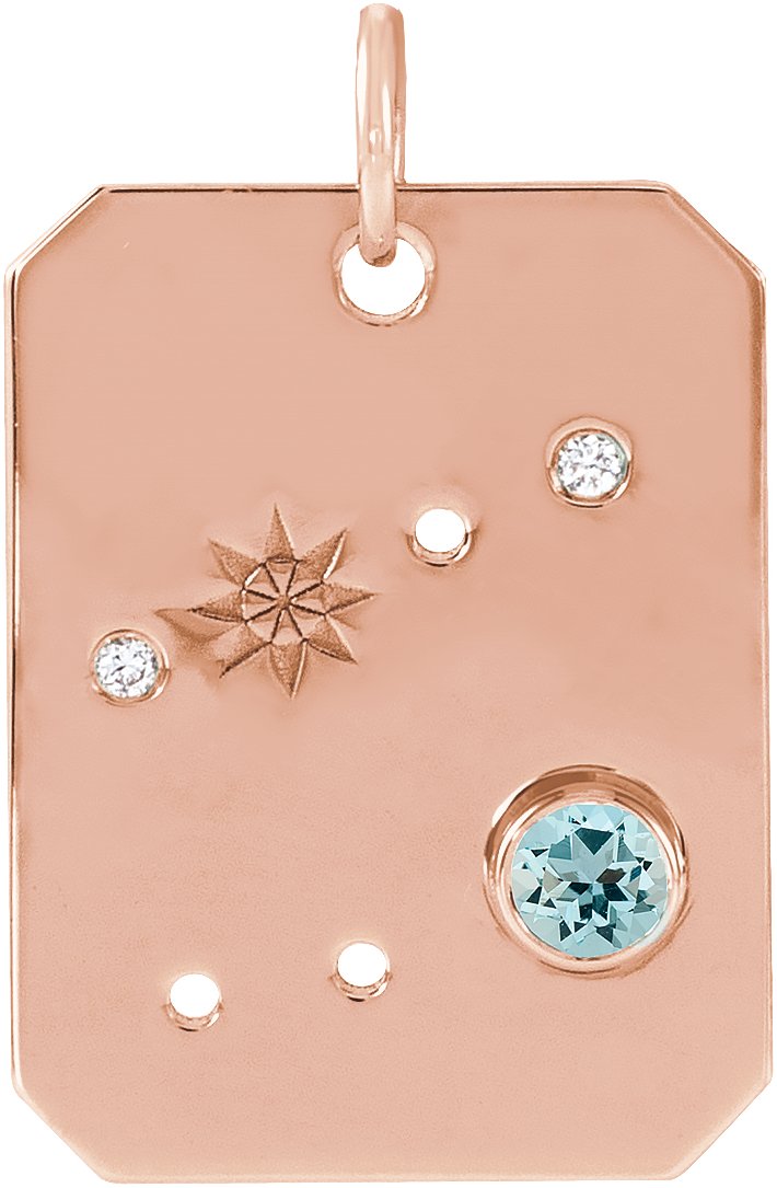 14K Rose Natural Aquamarine and .0075 CTW Natural Diamond Cancer Zodiac Constellation Pendant Ref 17891213
