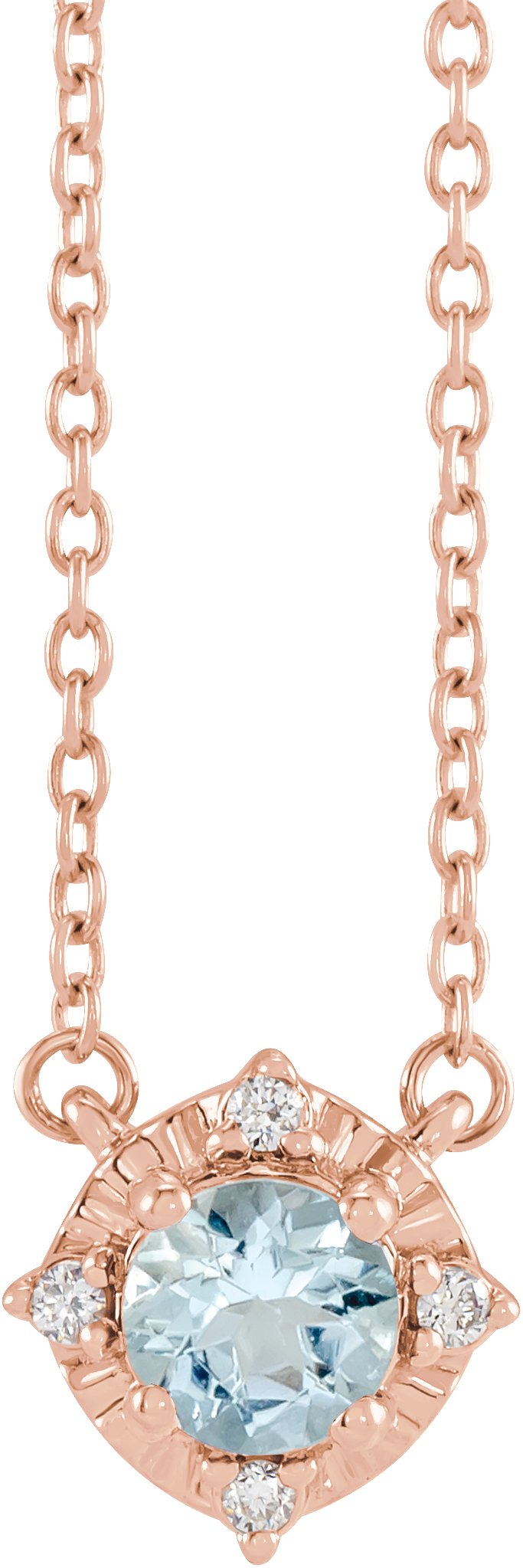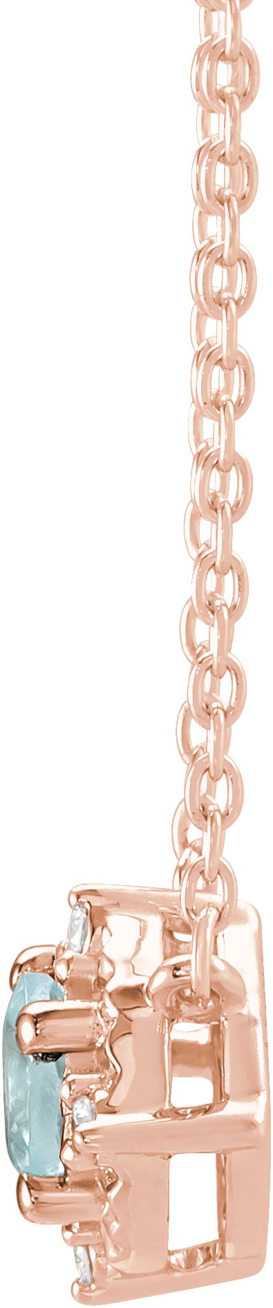 14K Rose Natural Aquamarine and .04 CTW Natural Diamond Halo Style 18 inch Necklace Ref 17917647
