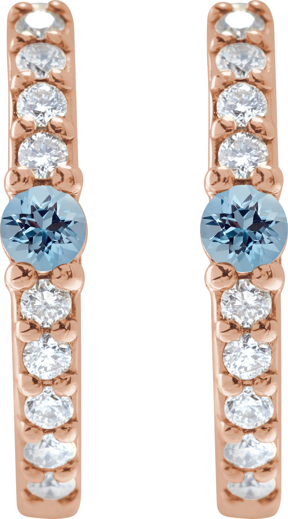 14K Rose Natural Aquamarine & 1/8 CTW Natural Diamond 13.6 mm Hoop Earring